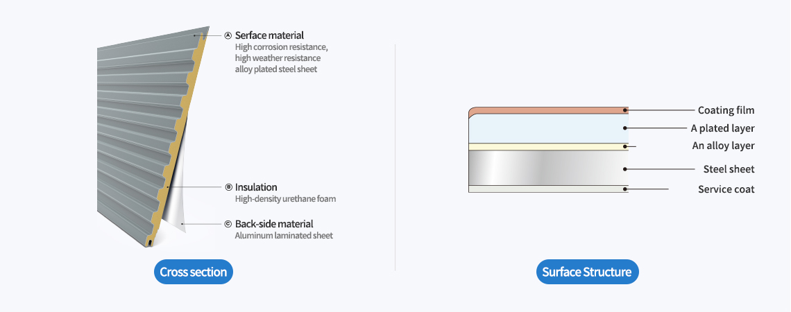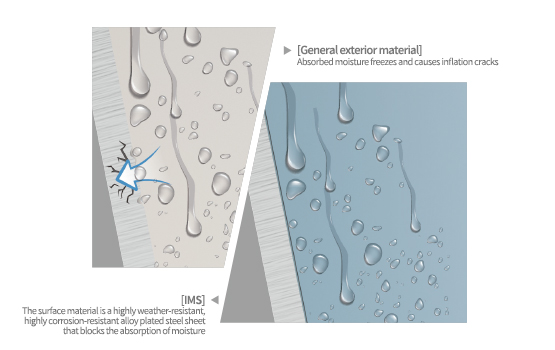 IMSIDING is very durable by integrally molding aluminum, zinc, magnesium alloy plated steel sheets and high-density urethane foam insulation.