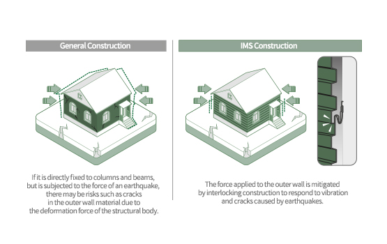 IMSIDING is light in weight, so it can respond to vibration and cracks caused by earthquakes.